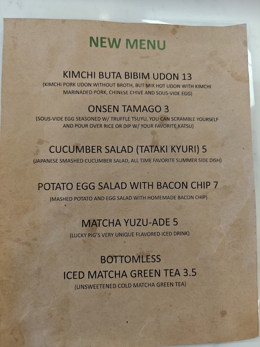 Customers rave about the flavorful offerings and attentive service. The unique yuzu matcha drink also adds a refreshing twist to your meal. With generous portions and irresistible flavors, Lucky Pig is a culinary destination worthy of your time.